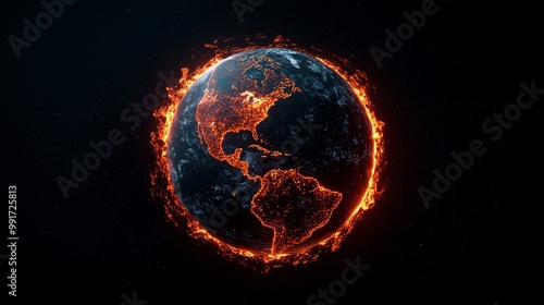 Apocalyptic Firestorm Closeup of Flaming Earth in Cosmic Isolation Cataclysmic Planetary Destruction Concept