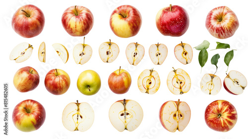 Apple Varieties in Multiple Views Isolated on White Background, PNG