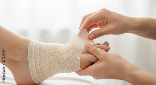 Applying bandage to injured foot