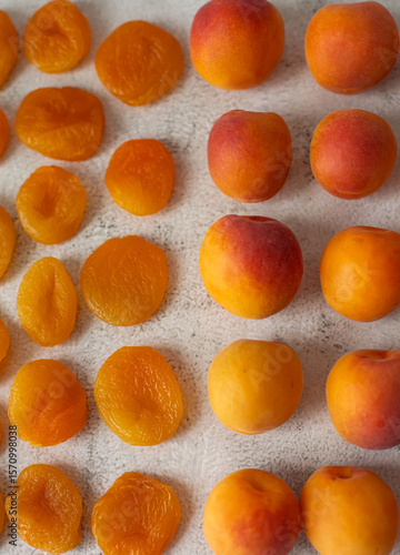 Apricot and dried apricot on a white background