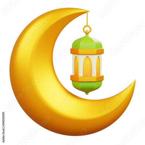 Arabic Lantern of Ramadan Celebration with Crescent Moon Isolated. Ramadan Kareem Islamic Element Icon Concept. 3D illustration