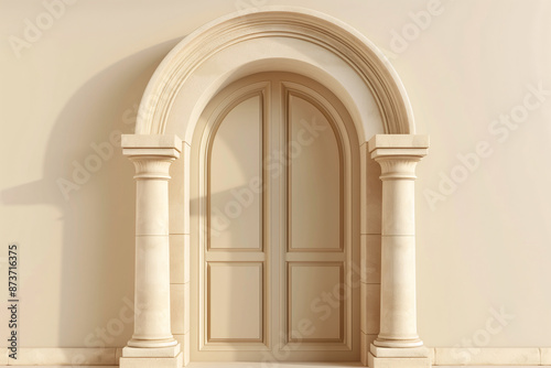 Arched door with light beige background and warm light
