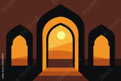 Arches leading to desert landscape view