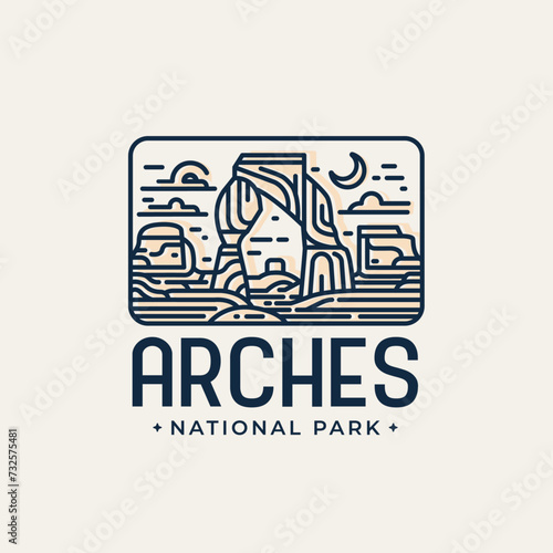 Arches National Park Line Art Badge Emblem Patch Style Logo Design