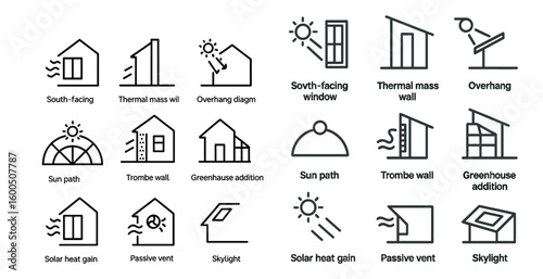 Architectural elements line icons set – flat, outline, sustainable design symbols