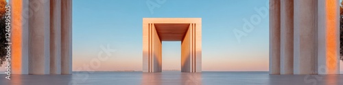 Architectural Minimalism Modern Concrete Pavilion with Pillars at Sunset - Urban Design Content and Innovative Spaces for Cultural Events