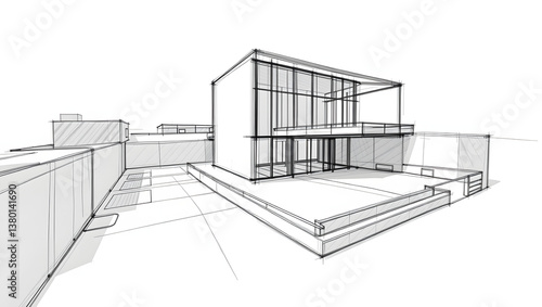 Architectural sketch showcasing a modern house design with clean lines and open layout.