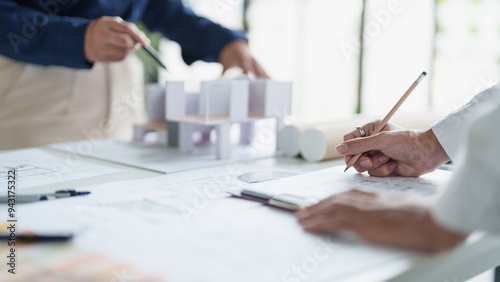 Architecture drawing on architectural Creative project business architecture building construction Industrial engineering Achievement Planning Design on blueprint eco Concept
