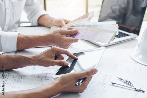 Architecture Engineer Teamwork Meeting, Drawing and working for