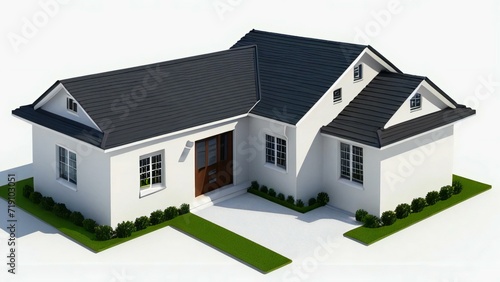 Architecture of 3d rendering modern house on white background. 3d illustration. concept for real estate or property