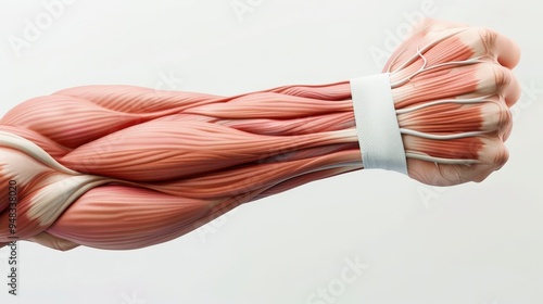 Arm Muscle Anatomy. Adult Athlete with Athletic Arm Muscles on White Background