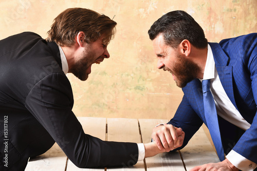 arm wrestling of businessman and aggressively compete man
