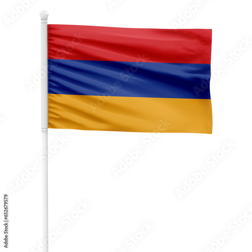 Armenia flag isolated on cutout background. Waving the Armenia flag on a white metal pole.
