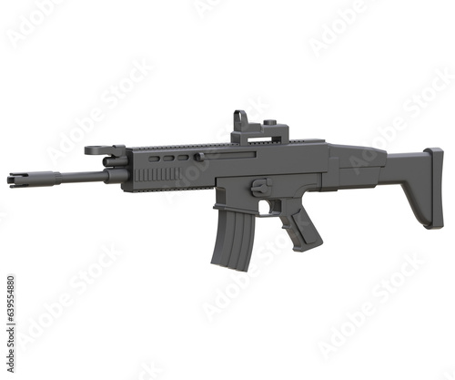 Army assault rifle With Black Color Isolate Transparent Background, 3D Rendering illustration