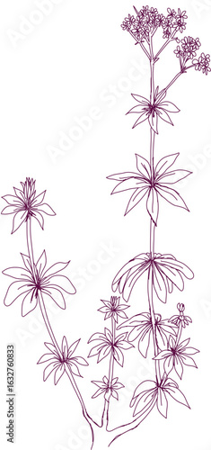 aromatic plant, aromatic, grass , weed , spice herb in vector, line art plant sweet woodruff