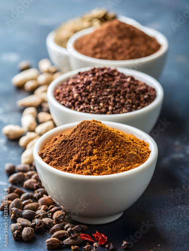 Aromatic Spices Assorted in White Bowls for Culinary Adventures and Seasoning Dishes : Generative AI