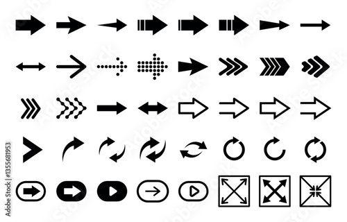 Arrow collection. Arrow set. Directional arrows. Arrow icons. Right, refresh arrow