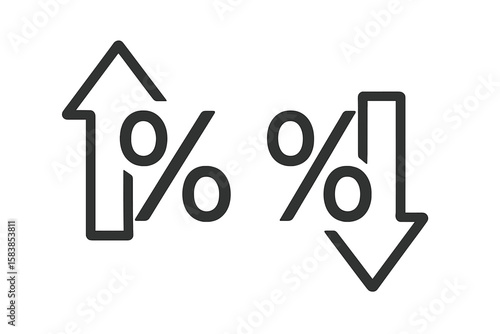 Arrow Percentage Icons for Financial Growth and Decline, Up and Down Percent Symbol, Interest Rate Change, Business Banking Credit Rate, Economic Increase Decrease, Vector Illustration