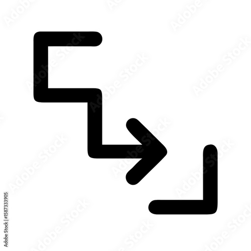 Arrow pointing down and right, indicating direction or movement isolated on transparent background