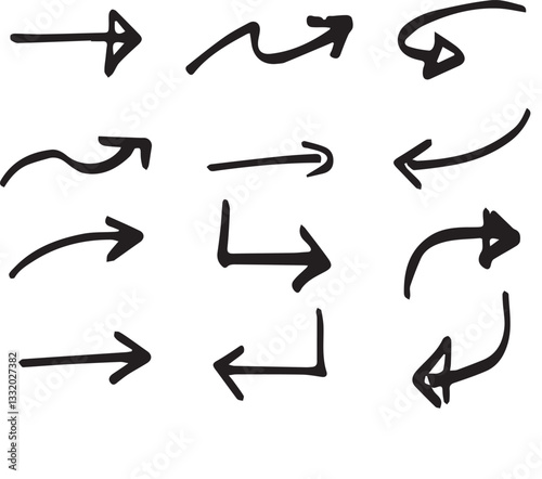 Arrow vector elements hand drawn arrows brush stroke curly arrow collection vector set