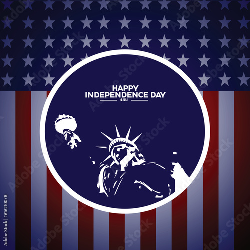 Art & IllustratioUSA independence day july fourth celebration card with liberty statue emblem on red blue and white colors vector illustration graphic design