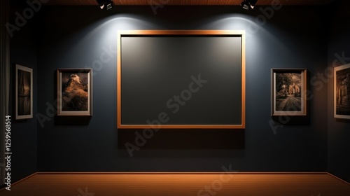 Art Gallery Interior with Empty Frame and Framed Pictures
