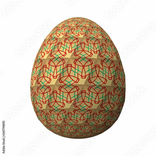 Artfully designed and colorful easter egg, ornate geometric and abstract colored pattern on white background