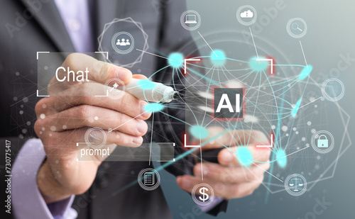 Artificial intelligence concept businessman holding ai on computer screen to using for in document management system and data analysis works