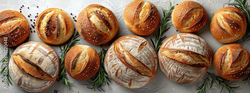 Artisan bread assortment with sesame, rosemary, and salt decoration