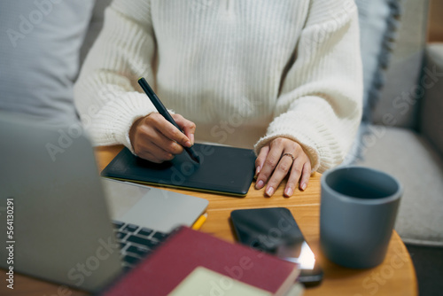Artist or creative designer drawing on tablet and laptop sketch with new project design.