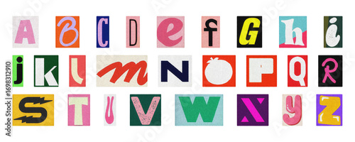 Artistic alphabet PNG set, colorful isolated collage letters for creative design