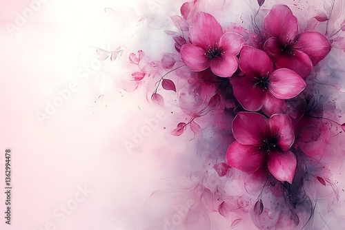 Artistic depiction of vibrant pink flowers with delicate watercolor aesthetics