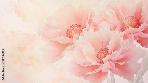 Artistic watercolor rendering of three large soft pink blooming flowers