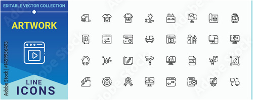 Artwork icon set. Contains related to art, graphic, drawing, paint, artistic and more. Design line icon set. Minimal icons pack. Editable vector illustration.