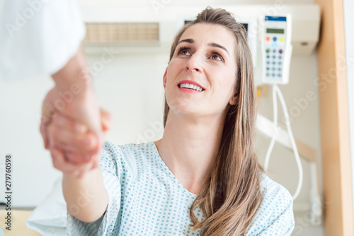 Arzt begrüßt Patientin im Krankenhaus mit Handschlag
