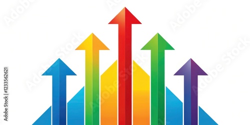 Ascending arrows illustrate booming business, financial gains, and upward trajectory in a growth chart.