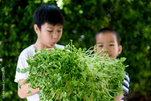 Asian boy interesting at young seedling