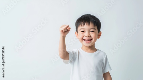 Asian boy with Victory Fist hand