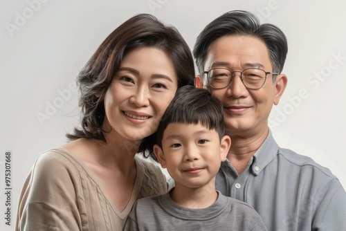 Asian family studio photo with copy space