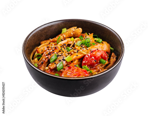 Asian stir-fried noodles with vegetables in bowl