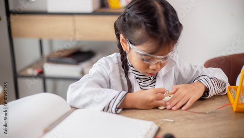 Asian students learn at home in coding robot cars and electronic board cables in STEM, STEAM, mathematics engineering science technology computer code in robotics for kids concept.