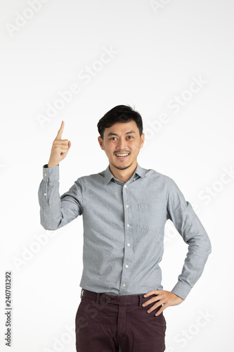 Asian young man click on idea