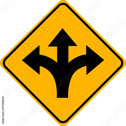 A-sign-warns-that-there-is-a-three-way-intersection-ahead.