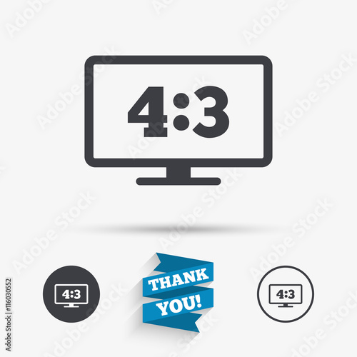 Aspect ratio 4:3 widescreen tv. Monitor symbol.