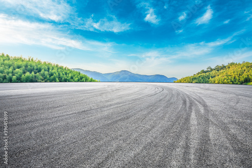 Asphalt road and green mountain with bamboo forest natural landscape.