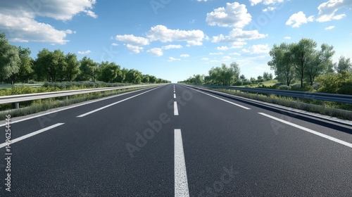 Asphalt Road Through Lush Green Landscape on Sunny Day