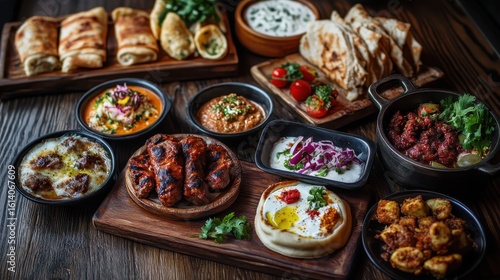 Assorted Delicious Dishes on Wooden Table with Fresh Ingredients