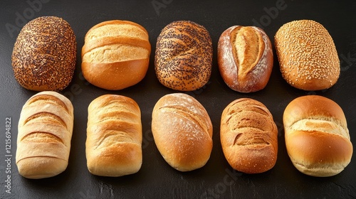 Assorted Fresh Breads on Dark Surface with Copy Space for Text