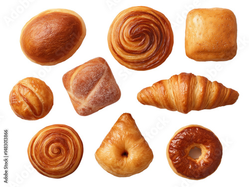 Assorted Freshly Baked Pastries and Bread Variety Showcase Transparent PNG background. Generative AI