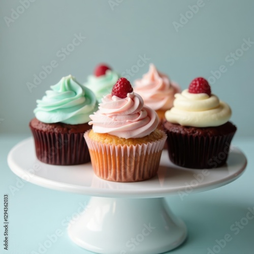 Assorted mini cupcakes, close-up, on white cake stand , dessert, sugar, catering